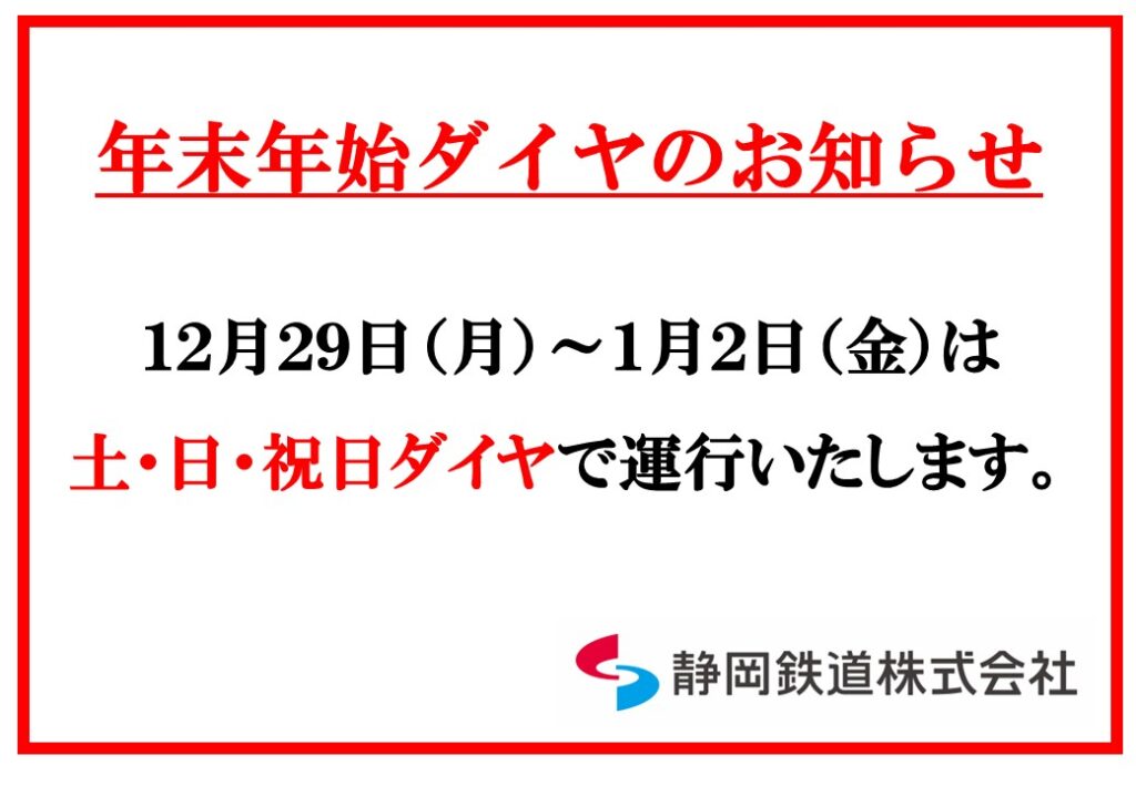 2025年12月29日(月)~ 2026年1月2日(金)は【土・日・祝】ダイヤで運行いたします。